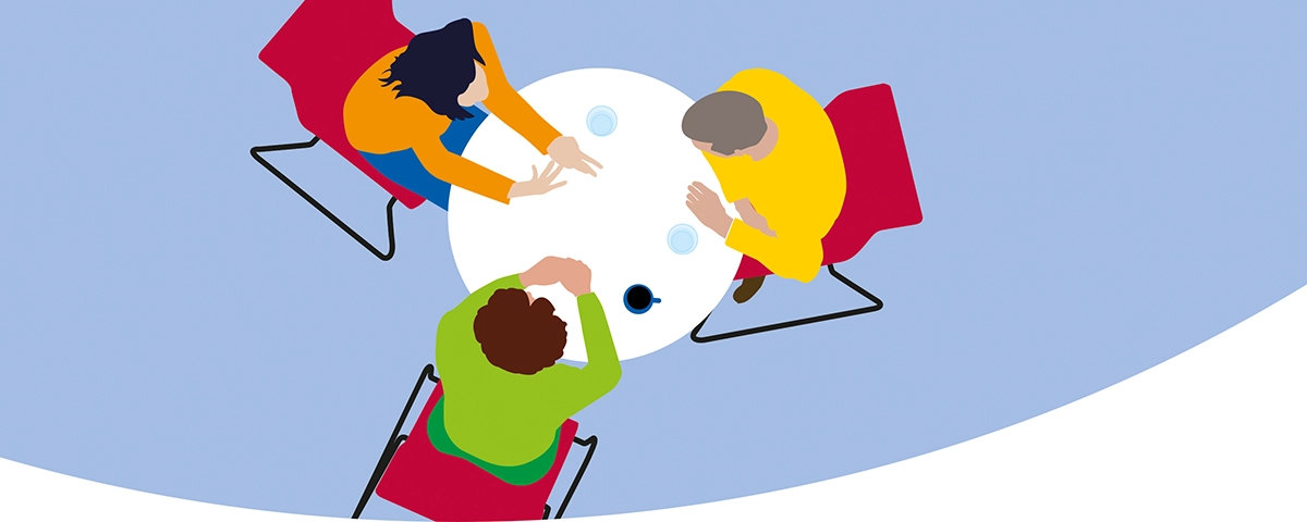 Menschen mit psychischer Erkrankung, Angehörige und Gesundheitsexperten im 3er-Gespräch